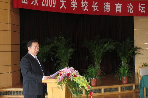 11月6日,山东2009大学校长德育论坛在济南南郊宾馆举行。本届论坛的主题是:新中国成立60周年与高校德育创新。省委高校工委副书记田建国、邢善萍出席论坛。全省高校校(院)长,以及驻济高校宣传部长、学生处长、社科部主任参加论坛。田建国副书记做重要讲话,七位校(院)长应邀做典型发言。