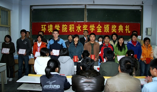 积水奖学金是专门针对环境学院给水排水工程专业的同学设置的,分为学习优秀奖学金和优秀学生助学金两类。会议表彰了荣获积水奖学金的20名同学。环境学院党总支书记朱世文代表学院感谢学校领导及有关部门对环境学院各项工作的关心和支持,感谢积水公司在我院设立奖助学金。随后吉井良先生分别用中、日两国语言对同学们表达了殷切的期望和良好的祝愿。