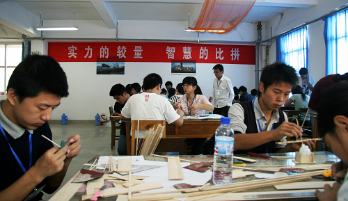 各参赛队的同学们在进行模型制作