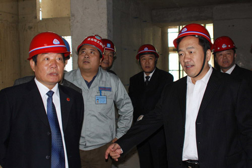 在新校区建设展牌前,新校区建设指挥部副指挥张伟刚介绍了新校区一期建设工程进展情况。随后,领导一行先后来到学生宿舍区、教学办公楼实地考察了工程建设、质量、安全、进度等方面的情况,并审查了教室、办公室、学生宿舍、卫生间等样板间的布置方案和外墙面的装饰方案。最后,各位领导与大家进行了座谈,耿书记、仪校长要求指挥部认真研究各位领导提出的建议和意见,并对新校区建设提出了更高的要求,并寄予了厚望。