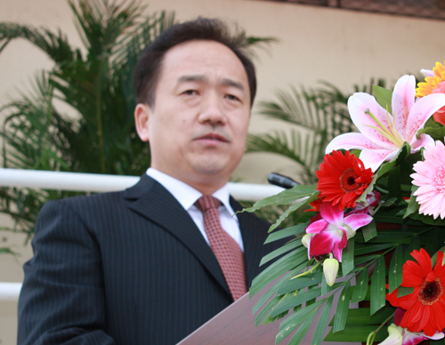 校领导耿喜华、仪垂杰、赵怀明、张光兴、胡培基、刘龙海、张健、李东、李国华、朱申红出席典礼。各学院及职能部门的负责同志和教师代表在主席台就座。4874名2009级新生参加开学典礼。校党委副书记杨向荣教授主持开学典礼。