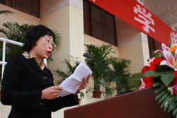教师代表、土木工程学院时伟教授,代表广大教师对新生表示祝贺,她表示要“用爱传播希望,用真诚对待学生”,本着“对学生负责”的宗旨,不断改革创新,勤恳工作。她希望2009级新同学要保健身体,要自立自强、要勤奋学习,要不断进取。