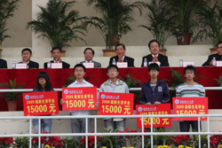 最后,第一批30名新生奖学金获得者从校领导的手中接过了新生奖学金,2009级新生开学典礼在鲜花与掌声中落下帷幕。