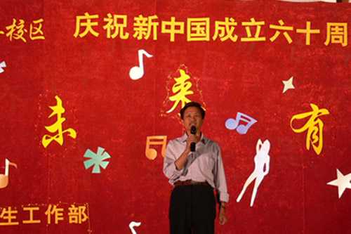 9月25日晚,费县校区师生齐聚一堂,在办公楼前广场举办“和未来有约”的“庆祝新中国成立六十周年暨迎新晚会”。 费县校区领导朱卫东、王玉楼、阚凤才现场观看了此次晚会,副校长朱卫东致辞。