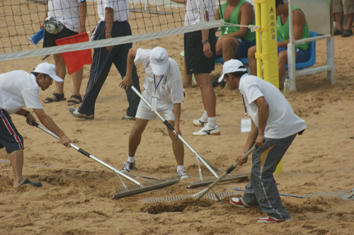 这些骨干志愿者都是历经层层选拔,从两千多名报名者中挑选的优秀分子。他们要在暑期提前参加培训,并通过测试赛发现问题,解决问题。在测试赛中,各位志愿者发扬无私奉献的精神,尽心尽力为运动员服务,保证比赛顺利进行。竞赛部的志愿者承担了测试赛中最重的任务,场馆布置,清理场地。他们在比赛进行中平沙、捡球,手上磨起了血泡都不喊一声苦。接待处的志愿者是起的最早,睡的最晚的人,每天的工作繁杂重复,劳心费脑,但是他们仍然坚守岗位。其他岗位上的志愿者也是在保质保量的完成自己工作后协助其他部门工作。这些骨干志愿者出色的工作得到组委会领导和带队老师的一致好评。