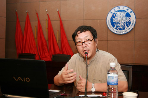 随后,崔教授分别从建筑与城市的关系、建筑与文化的关系、建筑与自然的关系三个方面向同学们做详细解说。在阐述建筑与城市的关系时,他以宁波国际办公楼、内蒙古大厦、重庆鞭阳门、江苏昆山娱乐文化中心、德阳市奥林匹克后备人才学校等建筑为例来说明如何在建筑中体现城市文化,如何用城市记忆的方法来表达空间意象,延续空间脉络;接着,他又以河南安阳遗址博物馆采用在大地上刻出甲骨文“环”字、蓬莱古船遗址博物馆将建筑与三艘古船相结合,还有拉萨火车站、苏州火车站等建筑为例具体解释建筑与文化的关系;在解说建筑与自然的关系时,他结合了泰山、甘肃沙滩、三峡等我国独具自然风貌的地区进行了详细讲解。