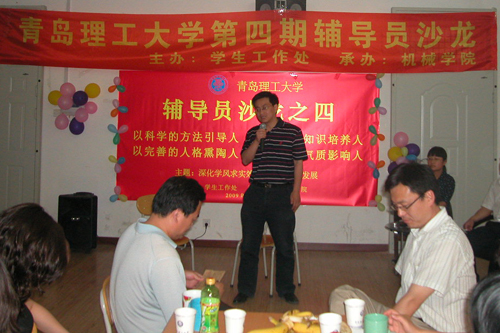 “常识知识,有问必答”环节,采取抢答的形式,内容涉及先优奖励、考风考纪、主修辅修、科学发展观知识、人文时政常识等方面,对辅导员学生工作基本素质进行了检测;“有你有我,携手共进”环节,通过“急食速咽”、“解铃系铃”等团体互动游戏寓思于乐,强化学生工作中过程意识、循序渐进规律的重要性。最后在“积淀足迹,继往开来”环节,每位辅导员工作过程中的感想、感受、感悟等将留言签名、集于一册,并系统汇总了“辅导员弹性坐班制”、学生工作“六步走”等新名词、新思路,做到了有研讨、有启发、有总结、有成果。