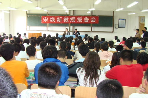 在报告中,宋焕新教授结合高等教育从精英模式向大众化教育的发展趋势,旁征博引,语重心长地建议年轻的学子们做好未来人生的规划,正确地选择适合自已的发展方向,主动地适应当前社会形势的发展;要准确定位,树立先就业、再择业的观念,在实践锻炼中增长才干,汇聚知识和能力于一身,真正成为社会的骨干。希望大学生一定要学会用两点论辨证的分析问题和解决问题;把尊重他人作为人生的基本修养,树立诚信的社会公德和高尚的人格魅力;要坚定信念,树立起对社会和家庭的责任感,做一个坚强自信、乐观向上的大学生。