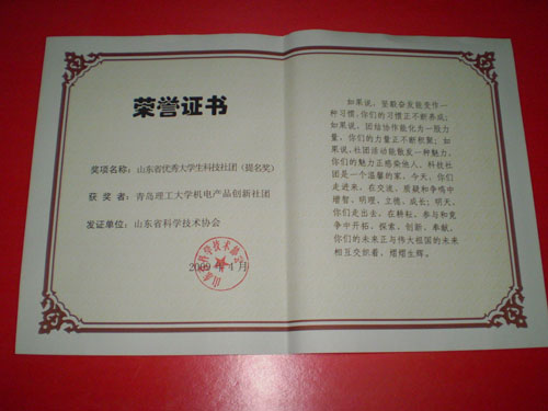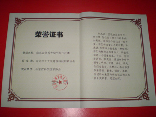 日前,从省科协获悉,威尼斯官网建筑学院的建筑科技创新协会和机械学院的机电产品创新社团凭借优异的成绩和良好发展态势分别被授予了“山东省优秀大学生科技社团”荣誉称号与“山东省优秀大学生科技社团提名奖”。