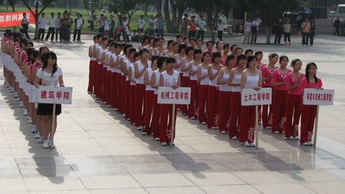 共有土木学院,机械学院,建筑学院,环境学院4个代表队参加此次比赛。比赛项目为拉丁风格的青春健身操,每队由14名女生组成。各个队同学青春、热情。协调、整齐的表演博得了场下观众的阵阵掌声。在整个比赛过程中还穿插了拉丁舞表演、太极拳表演及现代舞表演,为这次比赛增添了新的活力。