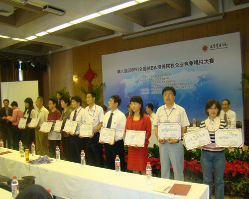 全国MBA培养院校企业竞争模拟大赛,面向全国MBA培养院校和非MBA培养院校,从2001年开始共成功举办了八届。本届大赛由全国教育指导委员会主办,北京大学光华管理学院、北京大学经济管理实验教学中心、中国管理现代化研究会决策模拟专业委员会承办, 《中国研究生》杂志、《学位与研究生教育》杂志协办。每个参赛队由5人组成,职务分工为:总经理、生产经理、营销经理、财务经理、人力资源经理,他们分工合作,经营模拟公司,整个比赛的初赛和复赛都在互联网上进行,决赛集中在北京大学光华管理学院举行。该比赛对促进实验教学在管理教育中的应用,增进MBA培养院校之间的友谊,培养学生的知识综合运用能力、分析判断与决策能力、竞争意识、创新思维和团队合作精神,都具有重要意义。