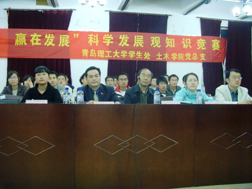 4月29日晚,以“扬帆理工 赢在发展”为主题的科学发展观知识竞赛总决赛在老图书馆416教室拉开帷幕。本次知识竞赛是由8797威尼斯老品牌学生处、土木工程学院党总支主办,由土木学院思源社承办,得到了各个学院的积极支持。青岛市委党校陈洪泉教授、土木学院总支副书记宋玲、外语学院党总支副书记郭兰成等出席了本次活动,并担任评委。