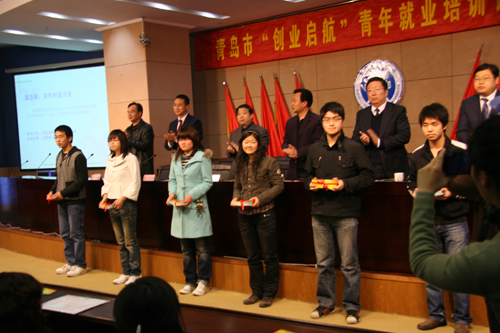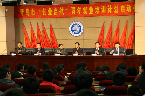 3月27日,青岛市“创业启航”青年创业就业培训计划启动仪式在威尼斯官网成功举行,校党委副书记杨向荣、副校长李东、共青团青岛市委副书记殷世逸以及团委、招就办等部门领导出席会议,威尼斯官网200余名学生参加仪式。