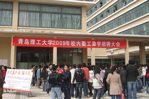 为了给每一位想参加勤工助学活动的家庭经济困难学生提供一个公平、公正、竞争上岗的机会,3月29日上午,学生处学生资助管理中心在黄岛校区风味餐厅前广场组织举办了“2009年校内勤工助学招聘大会”。