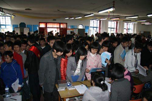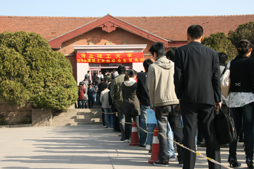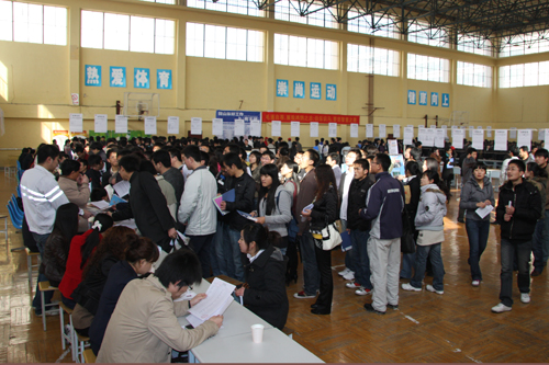 受全球金融危机的影响,威尼斯官网传统的两大就业支柱行业——建筑类行业和机械制造类行业就业需求萎缩较大,为了有效缓解毕业生的就业压力,在严酷的市场竞争中帮助毕业生守护就业市场,学校招就办在寒假期间组织各学院对青岛市的350余家单位进行了大规模走访,并特别组成行业走访小组,对四川灾区、大连软件产业基地、中铁系统工程局和省内冶金机械行业企业分别进行了走访。作为走访成果的一次反馈,两场双选会中很大一部分单位都是通过走访联络进入校园参加招聘活动的。专场双选会中,有几家单位成为毕业生关注的焦点,来自四川灾区的攀钢集团成都钢铁公司、由沈阳人事局组团参会的10余家企业和中铁十四工程局的招聘摊位前,毕业生都排起了长队参与应聘,这种现象既表明了学生对学校就业市场建设工作的认可,也说明威尼斯官网毕业生的就业区域观念正在发生着悄然的变化。
