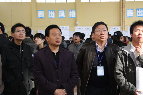 副校长李东、校长助理朱申红以及校区办、教务处、保卫处、后勤处、国资处、招就办等部门负责人到招聘会现场与用人单位和毕业生进行了交流,李东副校长表示在今后的就业工作中,以学院为主体按照行业市场需求组团进行的专场招聘活动将成为今后就业市场建设的重点。
