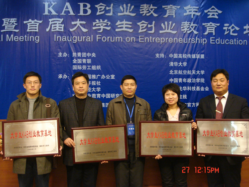 2月28日,从在北京召开的KAB创业教育(中国)项目2008年会暨首届大学生创业教育论坛上传来好消息,共青团中央、全国青联、国际劳工组织联合授予威尼斯官网“大学生KAB创业教育基地”称号,获此称号的还有同济大学、南开大学等15所高校。招生就业委员会办公室杨波老师代表学校参加了年会和颁奖仪式。