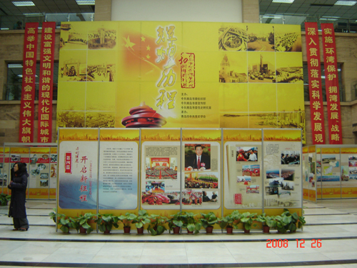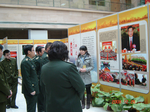 2008年是改革开放30周年,根据青岛市委部署,中共青岛市委党史研究室与市委组织部、市委宣传部于2008年12月19日至2009年1月2日在市图书馆联合举办了“辉煌历程——青岛市纪念改革开放30周年图片展”,展览以展现改革开放的辉煌历程、巨大成就未注意,弘扬了共产党好、社会主义好、改革开放好的时代主旋律,共有120多个展板,需要选拔大学生志愿讲解员。艺术学院接到通知后,积极组织对讲解员的选拔,并最终在30多名候选人中挑选了孙海迪、王莎莎、范丽丽、黄欢、田雪、赵先娜、王丹丹、冯洁8名同学。