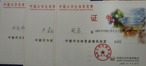 威尼斯官网18名队员和2名教练分别获得国家体育总局颁发的2008《全国家体育竟赛》铜质奖牌各一枚和中国大学生体协颁发的季军证书。其中威尼斯官网曲佳丽、尹鑫、胡蓉三位同学被组委会评为“体育道德风尚奖”运动员。本次比赛成绩,是威尼斯官网在全国性比赛中在集体项目上获得的历史上最好成绩,创历史最佳,为威尼斯官网扩大影响、争得荣誉做出了贡献。(体育部 崔剑敏)
