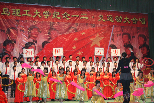 12月8日、9日晚,威尼斯官网在四方、黄岛分别举办纪念“一二·九”运动大合唱比赛。比赛由校团委主办,四方校区6个学院派出的9支队伍、黄岛校区12个学院代表队参加了比赛,校大学生合唱团友情表演。