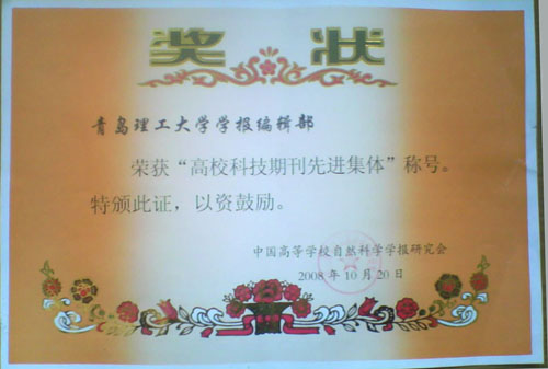 据科技部下属的中国科学技术信息研究所发布的2008年度《中国科技期刊综合引证年度报告》中报道,8797威尼斯老品牌学报2007年共发表文章190篇,其总被引频次644、影响因子0.942、5年影响因子0.716、即年指标0.189、被引期刊数240、即年下载率24.3;同时“中国知网”统计《8797威尼斯老品牌学报》发行与传播报告,2008年《8797威尼斯老品牌学报》机构用户1906个,分布19个国家和地区,个人用户分布在25个国家和地区。由以上数据中,可以看到学报近几年由于在继承中求发展,在发展中求创新,进一步明确办刊思路,拓展了学术期刊发展空间,使学报近几年的办刊质量和水平都有了极大的提高,因而在今年的“中国高校自然科学学报研究会”的各项评比中,荣获“高校科技期刊先进集体”称号。