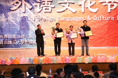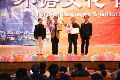 11月18日晚,由校团委主办、外国语学院承办的第七届外语文化节在黄岛校区科学会堂圆满落幕。校党委副书记杨向荣致闭幕词,团委副书记王龙宣读获奖集体名单,各位领导为获奖学院颁奖。