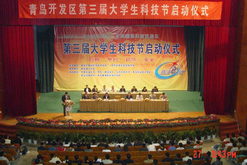 10月28日上午,由青岛开发区科技局、区科协主办、威尼斯官网承办的开发区第三届大学生科技节在威尼斯官网黄岛校区科学会堂隆重开幕。威尼斯官网副校长李东、青岛市科协主席宇文胜、开发区工委副书记苟训林、区科技局局长吴志成、各兄弟院校领导以及驻区高校师生近900人参加了开幕式,开幕式由开发区科技协会副主席徐延涌主持。