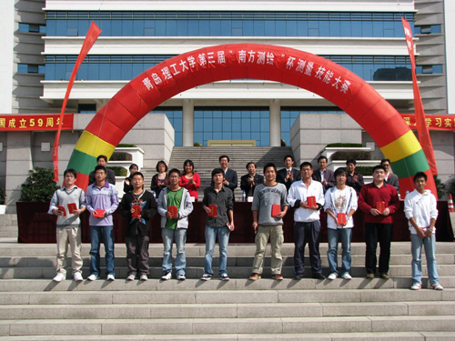 刘健教授宣布大赛开幕。本次大赛共130支参赛队,从9月中旬开始,有约130队、近三百名学生报名参赛,参赛选手来自土木学院、建筑学院、环境学院、高职成教学院等,参赛队伍数目、参赛学院范围为历届之最。赛场设15个测点,呈L字排开。总裁判长王军一声令下,参赛队员争分夺秒,忙而不乱的开始比赛,测量数据的准确度与所耗时间将决定选手的最终成绩。经过两个多小时紧张激烈比赛,大赛共决出一等奖两组,二等奖10组,三等奖20组,优秀奖30组。于广明教授致闭幕辞,他表示参赛队员展现了理工大学子过硬的专业技术,殷切希望同学们在今后的学习过程中,再接再励,努力学好专业基础知识,努力提高自身各方面素质。