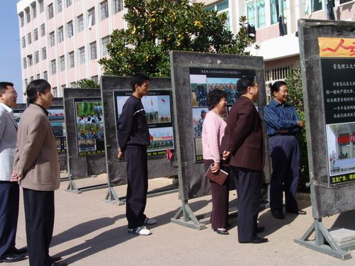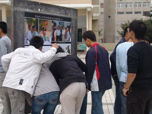 此次摄影展主要展示了08级新生在入学和军训过程中的表现,通过摄影展的方式对于理工学子的学习、生活状态进行再现,既丰富了同学们的课余文化生活,使校园的文化氛围更加浓厚。通过照片的展示,不仅使得同学们在回忆刚入学以及军训时的情境中获得收获,也引导同学们学会感恩、感动、感激,懂得回报父母、学校;懂得汗水的付出;懂得团队精神;懂得珍惜友谊;懂得拼搏精神;懂得提高自身素质。通过本次摄影展,进一步丰富学生的校园生活,提高了同学们的审美水平,引导同学们在生活中发现美,发现生活中的闪光之处,同时也推动了学院的良好学风建设和专业建设。(人文社科学院丛晓)