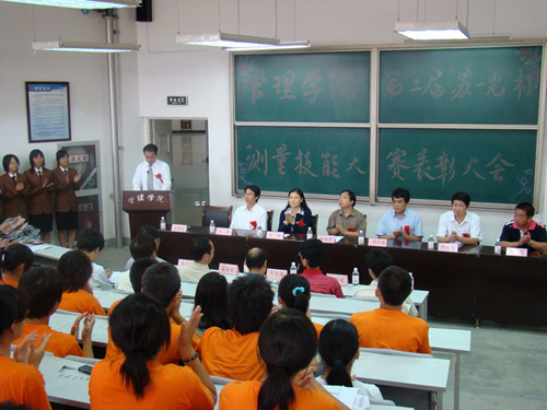 历经初赛、复赛、决赛三个阶段,第二届 “苏一光”杯测量技能大赛于9月21日落下了帷幕,共有10个组、50名同学获得了奖项。9月24日上午,表彰大会在2号教学楼阶梯403教室举行。校党委副书记杨向荣、苏州第一光学仪器有限公司副总经理柏小海、销售部经理茅亦盛、学生处副处长王维、团委副书记王龙、管理学院院长赵金先、党总支书记王新等出席了表彰大会。参加大会的还有大赛裁判组成员、获奖选手、参赛同学代表等。会议由管理学院党总支副书记申维东主持。