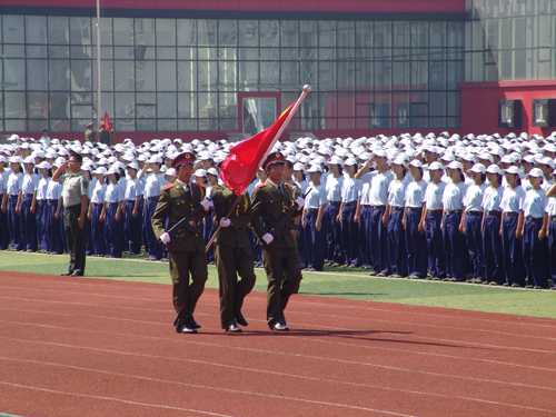 校党委书记耿喜华,党办、校办副主任孙川三,琴岛学院有关领导、各系部负责人及承训部队领导出席典礼。副院长王晓元主持典礼。2008级受训新生组成的42支方队在军旗方队的带领下接受了检阅。他们迈着整齐的步伐走过主席台,赢得了阵阵掌声。