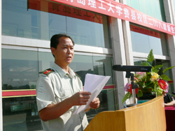 9月12日上午,费县校区08级新生军训动员大会在办公楼前广场召开,校区领导朱卫东、王玉楼、阚凤才和费县人民武装部有关领导出席会议,08级新生和全体班主任、教官参加了会议,会议由费县校区副校长阚凤才主持。