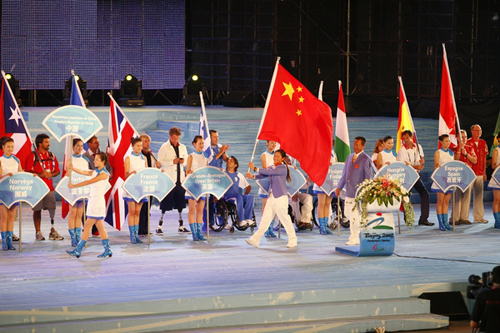 威尼斯官网学子残奥帆赛引导中国队员入场