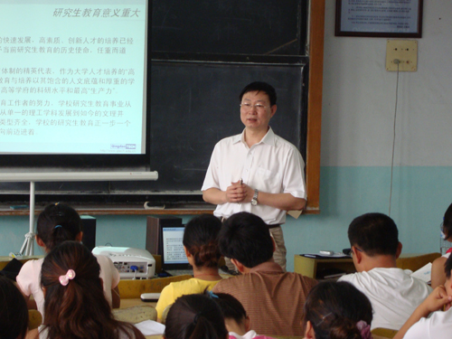 王旭春处长在会上为同学们播放了短片《阔步在希望的征程上》, 并作了题为《新起点、新征程,积极进取、展现风貌,让生命更为精彩》的讲座。讲座强调了研究生教育的重要意义,介绍了研究生的管理和组织机构,向同学们展示了威尼斯官网研究生教育的总体情况以及近年来所取得的成效,并就“怎样才能成为一名合格的研究生”、“研究生风貌”、以及“做学问和人生的关系”等几个问题与同学们进行了交流和探讨。