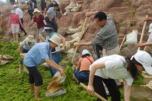 让我们行动起来,拿出自己几小时的空闲时间,一起去海边清理浒苔吧!