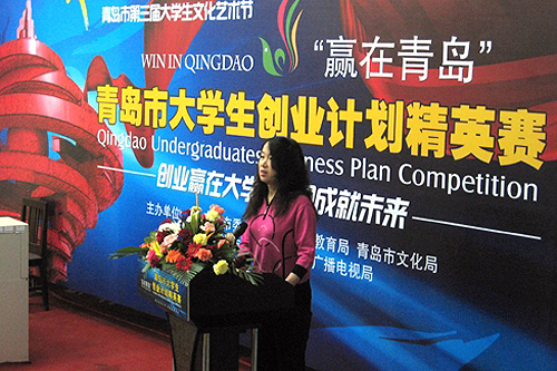 随后,青岛市委宣传部高校教育处处长任黎平讲话,她指出,创新是一个民族进步的灵魂,是一个国家兴旺发达的不竭动力。创新需要以丰富的知识储备为依托,因此在具有高素质高学历的高校大学生中间深入开展自主创业活动,发掘、培养、保护创新人才,以创业带动就业,具有十分积极和深远的现实意义。她表示,此次“赢在青岛”大学生创业计划精英赛的举办,为大学生提供了一个自由展现才能的平台,希望参赛选手通过比赛进一步培养系统思维能力、实践能力和团队协作精神。