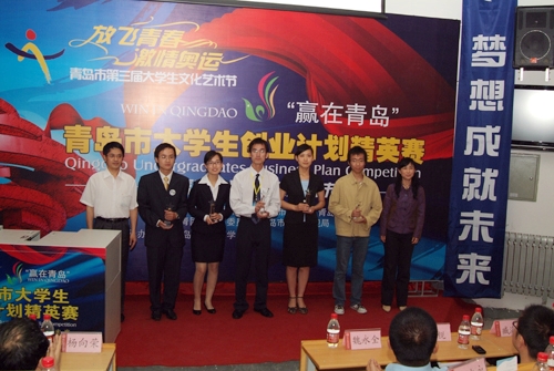6月17日,“放飞青春,激情奥运”青岛市第三届大学生文化艺术节——“赢在青岛”大学生创业计划精英赛决赛在建筑馆111教室举行。本次大赛面向青岛市各高校全日制在校博士生、硕士生、本专科大学生,广泛征集创业作品。各高校共推荐参赛作品37份,经过预赛,16支参赛队进入本次决赛。比赛中,各队先后完成参赛作品powerpoint展示及答辩项目、案例分析项目、素质拓展项目三个环节,经过激烈角逐,6支参赛队荣获大赛一等奖。