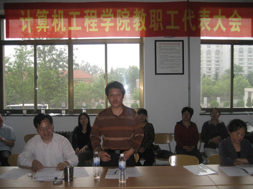 6月6日,计算机工程学院召开2008年教职工代表大会,校工会主席李选民应邀出席会议并致贺词,计算机学院两校区教职工代表25人参加了本次大会,学院党总支副书记魏俊文主持会议并致开幕词。