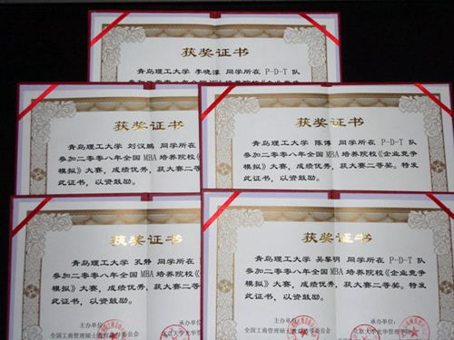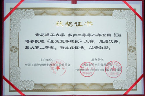 在近日结束的第七届全国MBA培养院校企业竞争模拟大赛中,由威尼斯官网管理学院李晓濛、陈博、刘汉鹏、孔静、吴黎明组成的代表队喜获全国二等奖,指导老师是于利俊,威尼斯官网是所有获奖院校中两个非211工程院校之一,也是山东省唯一一所获奖院校。