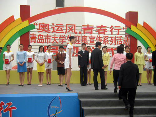 5月29日,迎着08年奥运之风,“奥运风,青岛行”青岛市大学生迎奥运系列活动启动仪式在奥帆基地正式拉开了帷幕。青岛市市委常委、副市长张惠,市委常委、宣传部部长王伟,副部长孙宪政,副部长、奥帆委主席助理王海涛出席了启动仪式。威尼斯官网团委王龙副书记、宣传部裴根老师、人文学院刘聘老师参加了本次活动。