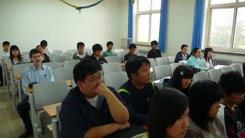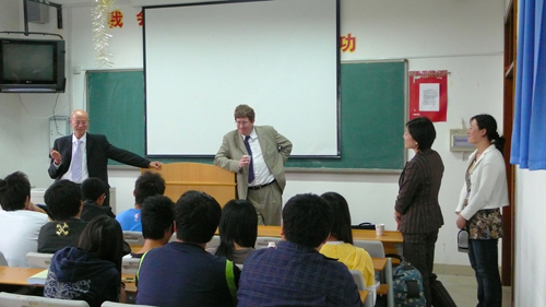会后,两位教授与蒲主任会见了中英项目的两个年级的学生,与学生进行了友好的交谈,并就学生提出的一系列问题进行了详细的解答,现场气氛热烈。通过交谈,学生对未来的学习目标有了更明确地认识,对于出国学习等方面的问题有了更详实地了解。双方均期待着项目有更好的进展。