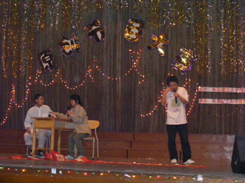 此外,大赛还特别邀请青岛市“舞功堂”、外国语学院和大学生艺术团表演了嘉宾节目,精彩的演出受到同学们的热烈欢迎。同时,为了表达对在四川汶川地震中遇难人员的深切慰问和对祖国的衷心祝福,大赛临时加入一个特别节目——诗朗诵《中国挺住!中国加油!》,虽然从诗歌创作到登台演出只有短短几天时间,但诗歌所传达的信念和演员动情的演出深深的感染了现场的每个人。