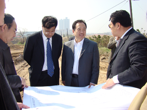 4月24日上午,仪垂杰校长在出席黄岛校区春季田径运动会开幕式后,在副校长胡培基、副校长李东和校长助理朱申红的陪同下,先后视察了教育小区和新校区,检查了两项建设开工准备情况。