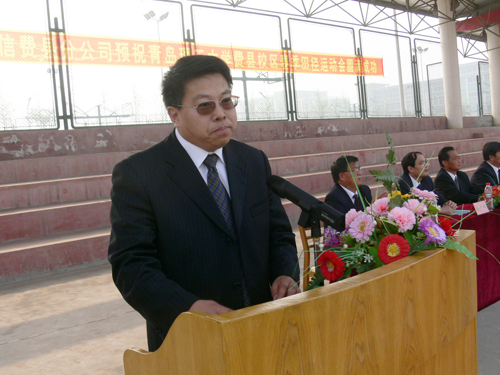 张伟星校长在致开幕词时,代表费县校区行政和党委对运动会的胜利召开表示热烈的祝贺,向参加开幕式的费县的领导和为大会的召开做了大量筹备工作的组委会工作人员表示衷心的感谢,向积极参赛、挑战自我的全体运动健儿表示诚挚的敬意。张校长指出, 这次田径运动会是费县校区首届田径运动会,运动会的召开是对校区体育运动水平和体育运动成绩的一次大检阅,同时也是校区师生道德品质、思想作风、精神面貌和校风校纪的一次大展示,是以实际行动迎接第29届奥运会召开的具体体现。张校长还对全体运动员、裁判员、工作人员和全体观众提出了希望,并要求努力将本届运动会开得安全、文明、有序、高效。