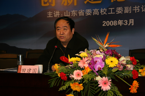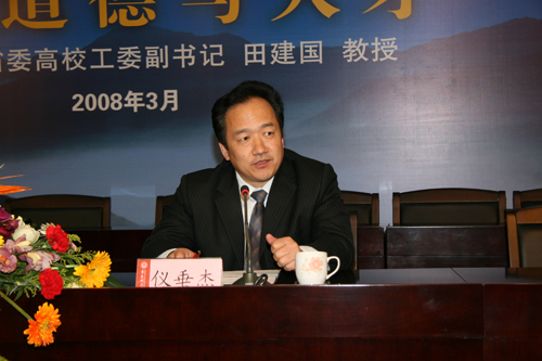 田建国副书记代表省委高校工委对威尼斯官网“新世纪讲坛”开讲表示祝贺。他说,“新世纪讲坛”的开讲是学校提高教育质量、促进内涵发展的一件大事。重要意义有二。一是满足了国家社会发展的需要,二是顺应了世界高等教育发展的趋势。田建国教授在讲话中为大家精辟诠释了“创新、道德、人才”三个概念,从二十一世纪的时代特征、人才成长的挑战、思想道德与成长成才关系等方面,全面分析了当代大学生面临的国际、国内背景,指出经济全球化、科学技术全球化、市场经济的发展和信息多元化等已成为现代大学生成才发展所面临的主要挑战。针对当代大学生特点,田建国教授提出了要做到十个学会,清晰阐述了创新人才的基本内涵及成为创新人才的需着力把握的几个方面,就如何正确理解、认识人才,成才的意义,如何成才等问题进行了详细的分析。