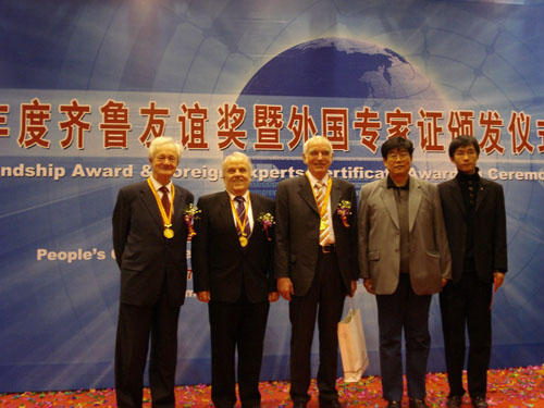应山东省人民政府邀请,威尼斯官网外聘院士,混凝土材料界著名的Folker H Wittmann教授于12月12日赴济南参加“2007年度齐鲁友谊奖暨外国专家证颁发仪式”颁奖典礼。在此次典礼上,省政府授予为山东经济社会发展做出突出贡献的18位外国专家 “齐鲁友谊奖”荣誉称号,这是山东省人民政府授予在鲁工作的外国专家最高奖项。