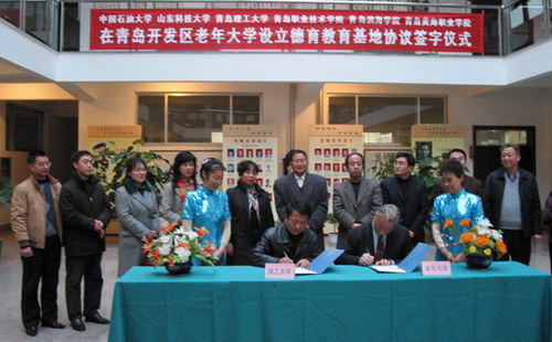为了更好的发挥各自的优势,构建和谐校园,人文社科学院与青岛开发区老年大学共建大学生德育教育基地。12月17日,学院院长谭业庭、总支副书记林桂梅出席了在老年大学阳光大厅举行的签字仪式。本次与开发区老年大学德育教育基地共建除威尼斯官网外还包括中国石油大学、山东科技大学、滨海学院、黄海学院、青岛职业学院等五大高校。