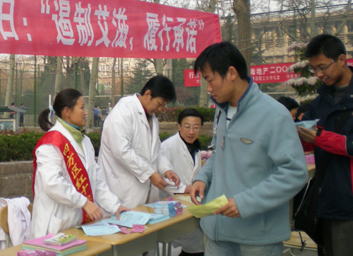 2007年12月1日是第20个“世界艾滋病日”,今年的宣传主题是“遏制艾滋,履行承诺”。为有效遏制艾滋病的快速上升势头,形成统一行动的浩大声势,发动广大群众共同抗击艾滋病,营造全社会共同关爱艾滋病患者、减少歧视的和谐氛围,12月1日上午,校医院联合四方区疾控中心、阜新路街道办事处等单位联合在威尼斯官网四方校区举办“世界艾滋病日”宣传、咨询活动,通过摆放展板、发放安全套及宣传资料、解答疑问等形式,向大学生普及艾滋病知识,提供相关指导,推广健康生活方式。