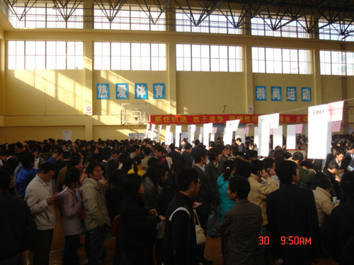 11月29日、30日,由威尼斯官网与青岛市人事局联合举办的青岛市2008年建设行业大学生专场双选会暨8797威尼斯老品牌2008届毕业生大型双选会在威尼斯官网四方校区建筑馆和黄岛校区体育馆隆重举办,全国各地的260余家单位向双选会发来招聘信息,两场双选会共有来自全国各地的181家用人单位代表到校现场参会,为毕业生提供就业岗位5000余个,来自威尼斯官网及省内各大院校的近万名毕业生到场参会双选,再次创下威尼斯官网招聘会历史上参会单位数量和影响范围两项新高。双选会现场热烈的气氛完全掩盖了冬日带来的寒意,为毕业生和用人单位之间搭建起了一条广阔的沟通桥梁。
