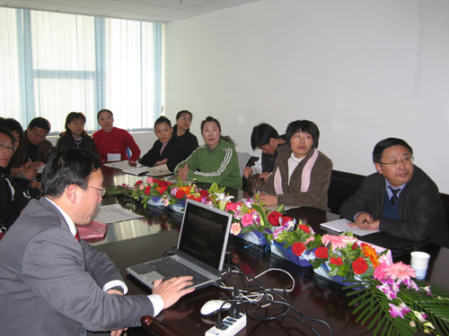 体育部总支书记刘金铭从体育部概况、体育教学、群众性体育活动、竞技体育及竞赛成绩、大学生体质健康测试、今后的工作思路等方面向王教授作了汇报。